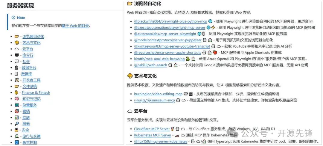 全面覆盖:项目几乎涵盖了所有你能想到的MCP服务器类型,从浏览器自动化到数据库访问,再到云服务集成,监测,搜索,应有尽有。