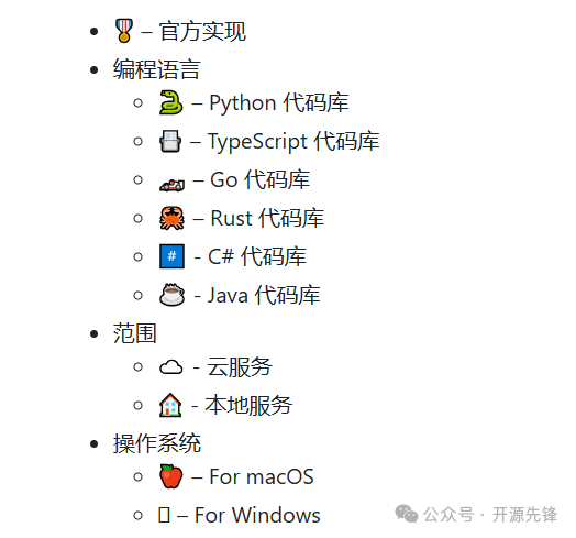 丰富的服务器实现:这个项目包含了多种编程语言实现的MCP服务器,比如Python、TypeScript、Go、Rust和C#。这意味着无论你喜欢哪种语言,都能在这里找到适合自己的服务器实现。